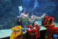 当日,位于泰国曼谷市中心的暹罗海洋世界举办迎新年活动,潜水员在水下表演舞龙,吸引市民前来观赏。