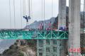 1月17日,贵州省贞丰县,随着最后一节钢桁梁通过世界最大跨度的缆吊系统精准吊装,贵州六枝至安龙高速公路花江峡谷大桥顺利合龙。该大桥主桥跨径1420米,桥面至水面高度625米。建成后,大桥主桥跨径居山区桥梁跨径世界第一,大桥也将超越杭瑞高速北盘江大桥565米的垂直高度,成为新的世界第一高桥,被网友称之为“横竖”都是世界第一。图为待合龙的花江峡谷大桥。(无人机照片)