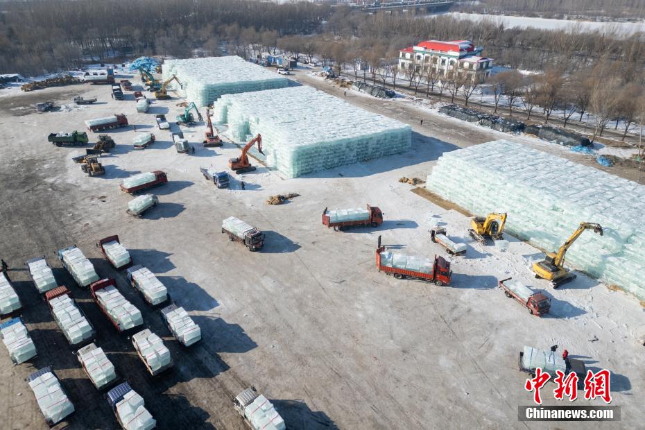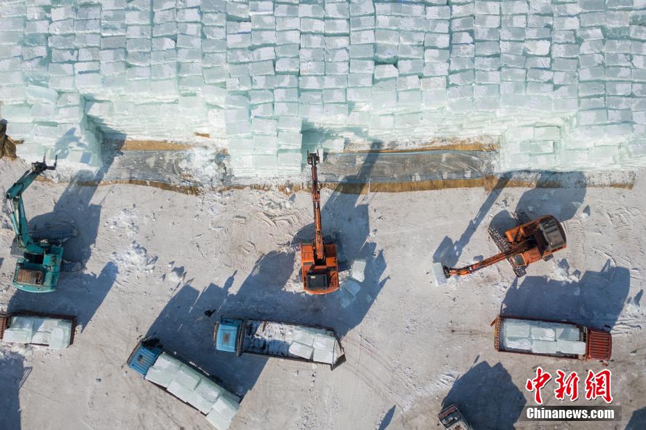 采冰工作完成后,冰块被运送到储冰场,在低温、避光、隔热、密封的条件下储存。这些被储存起来的冰块将在第二十七届哈尔滨冰雪大世界的建设中重见天日。
