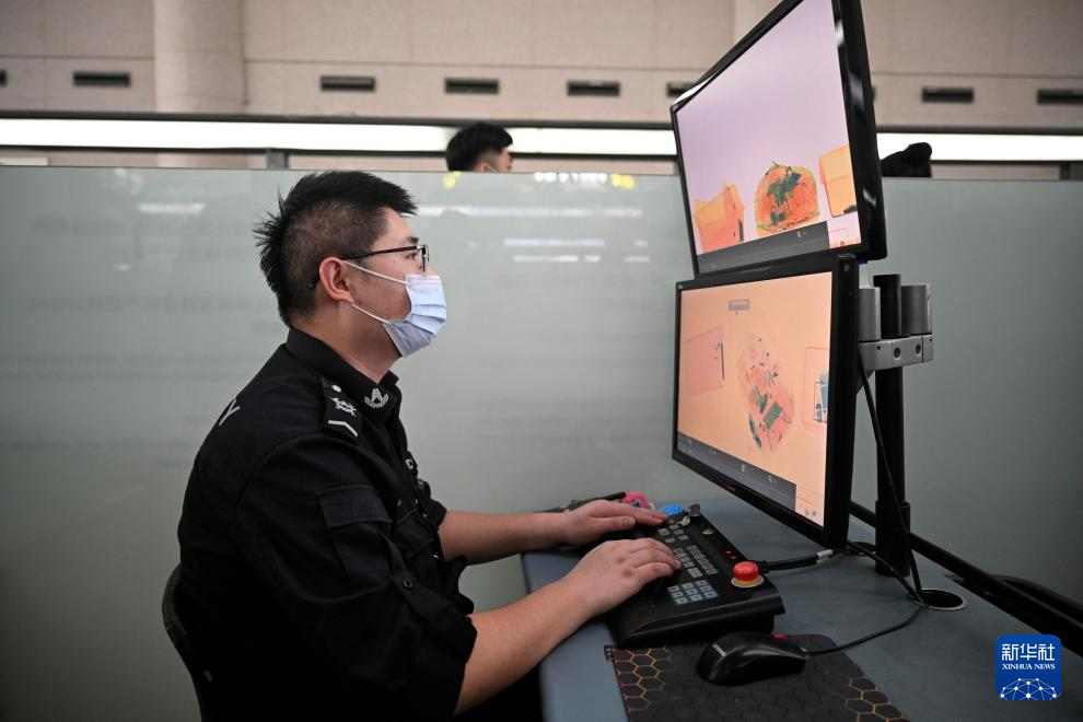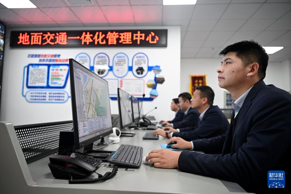 1月17日,银川河东国际机场地面交通一体化管理中心工作人员在对交通状况进行监控。新华社记者 王鹏 摄