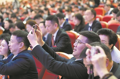 1月21日,政协第十二届温州市委员会第四次会议第二次全体大会(大会发言)在市人民大会堂举行,政协委员及列席人员认真聆听。