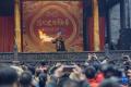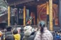 1月21日,观众在重庆市巴南区西流沱小镇观看川剧吐火表演。