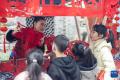 1月21日,在重庆市巴南区西流沱小镇,非遗面塑传承人将面塑作品赠送给小朋友。