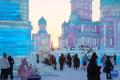 1月23日,游客在哈尔滨冰雪大世界园区内游览。