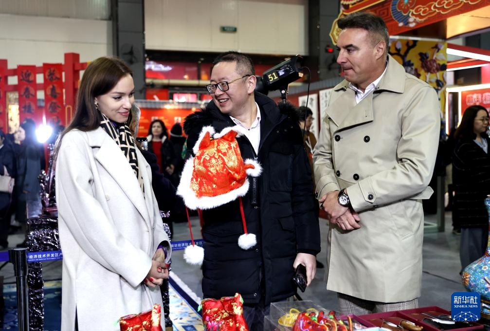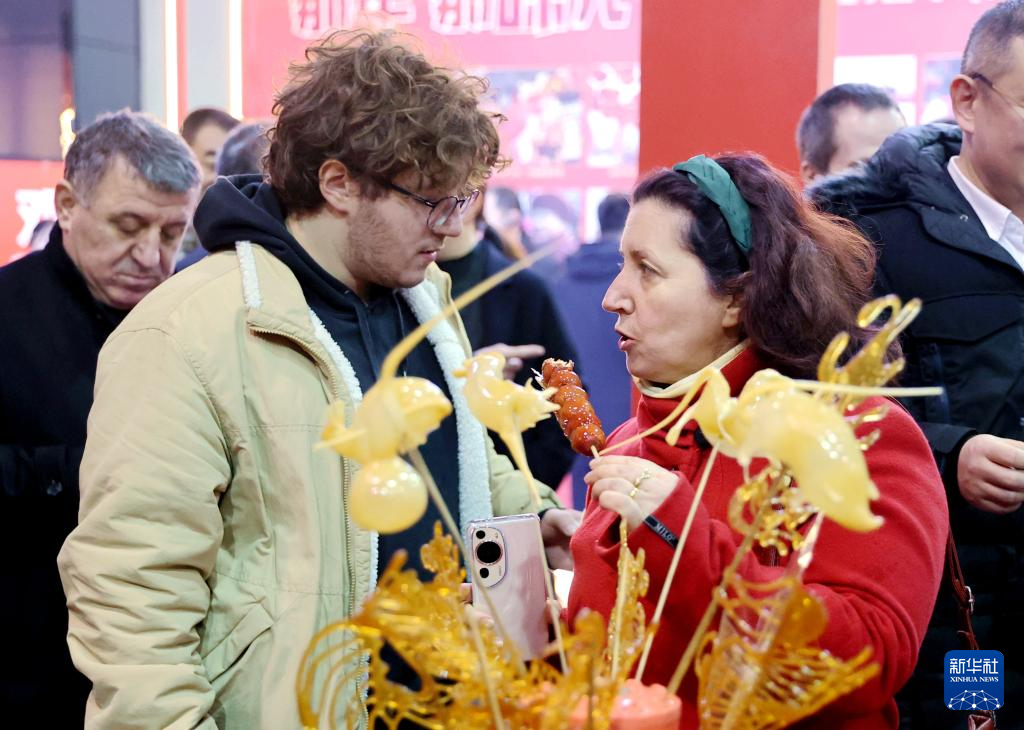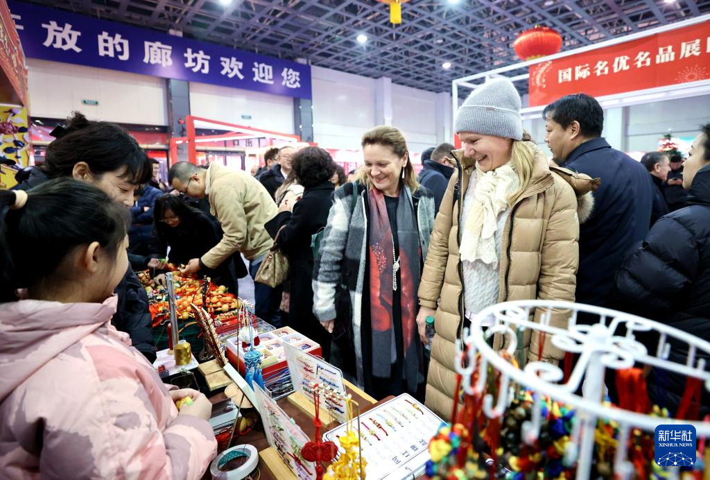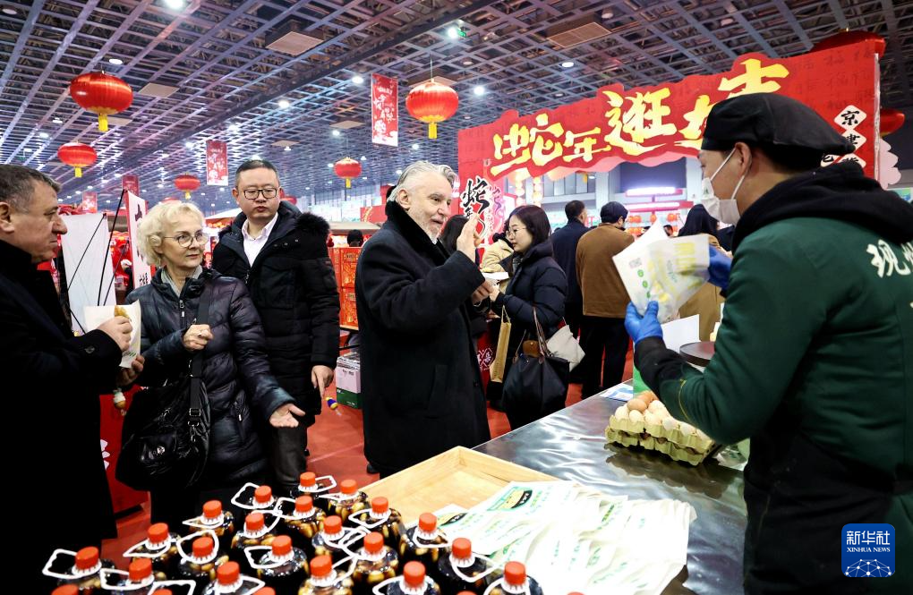 春节将至,来自多个国家的驻华使节和国际友人前往河北廊坊首届国际年货节选购年货,感受中国传统文化。 1月23日,驻华使节团成员在廊坊国际年货节京津冀老字号展区选购年货。