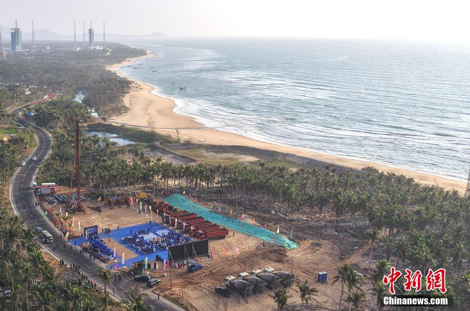 1月25日,海南商业航天发射场二期项目正式开工,计划新建两个液体火箭发射工位。海南商业航天发射场是中国首个开工建设的商业航天发射场,二期项目位于海南省文昌市东郊镇滨海区域,将主要建设发射区、技术区和测控站。图为海南商业航天发射场二期项目建设开工仪式现场。(无人机照片)中新社发 肖若洋 摄