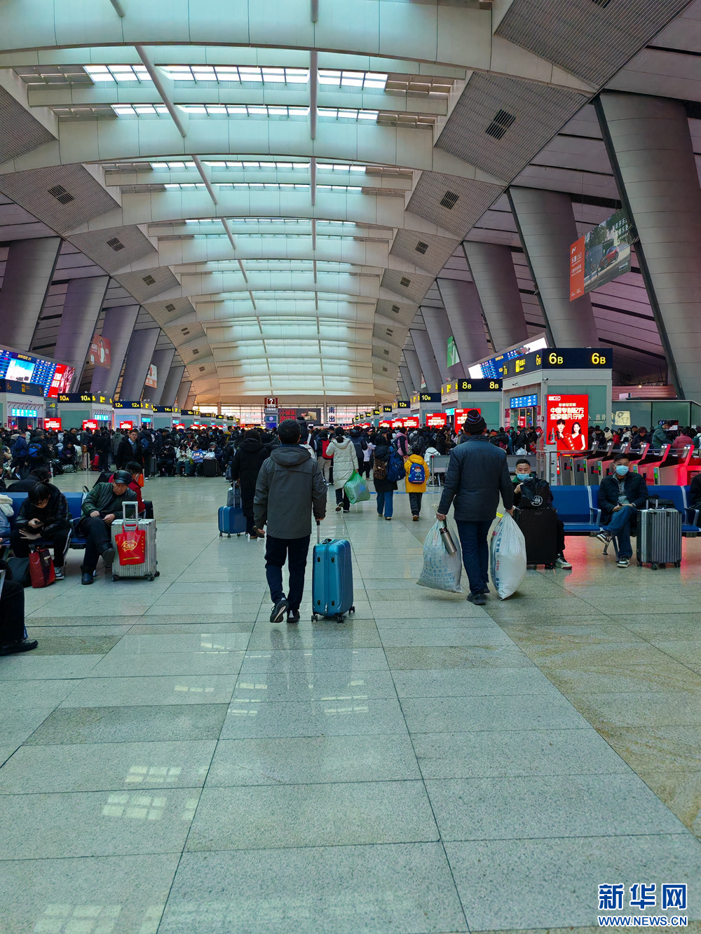 1月22日,乘客在北京南站候车。当日是北方的小年,不少乘客踏上返乡的旅途,期盼与家人团聚,共度新春。新华网记者 赵凤艳 摄