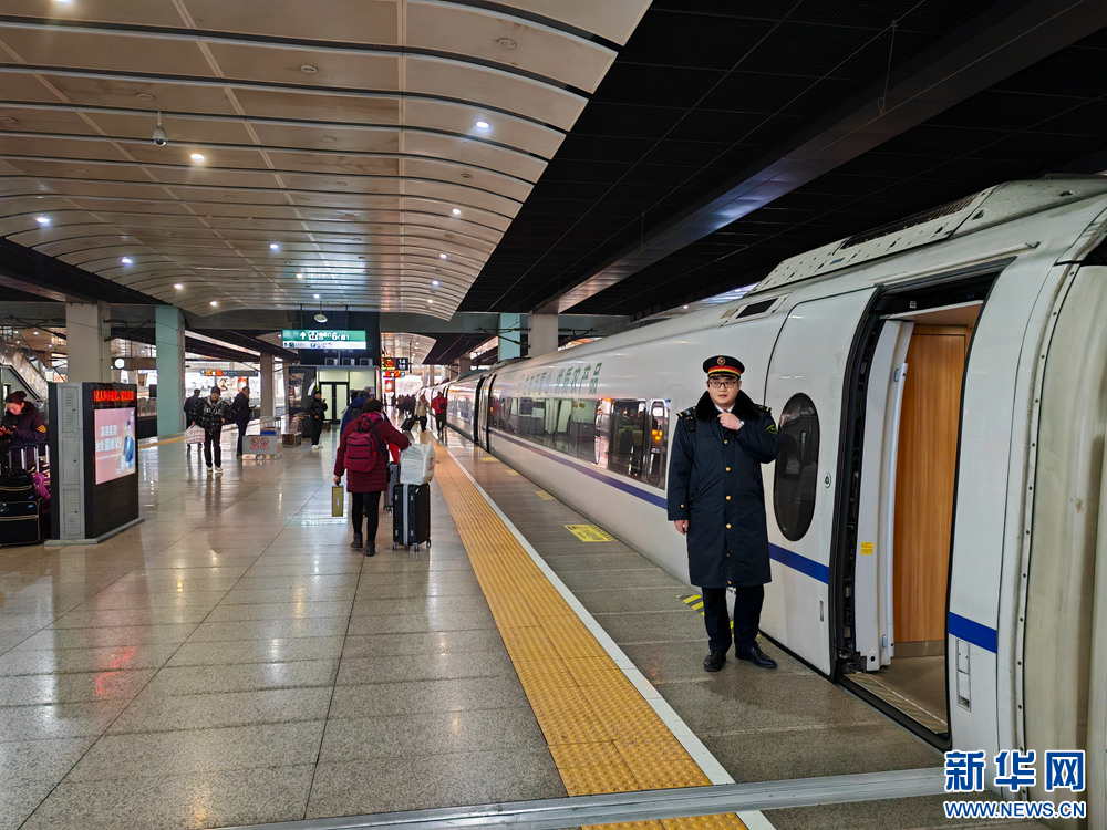 1月22日,乘客在北京南站上车。当日是北方的小年,不少乘客踏上返乡的旅途,期盼与家人团聚,共度新春。新华网记者 赵凤艳 摄
