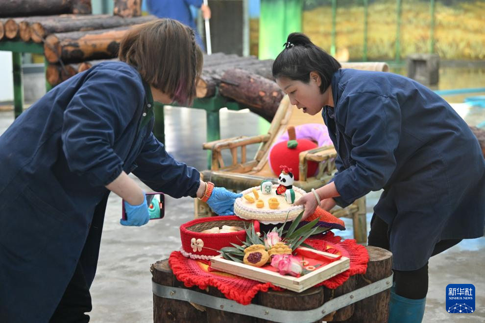 1月27日,在天津动物园熊猫馆,熊猫保育员为大熊猫准备食物。当日,天津动物园的保育员和营养师团队为园区内的大熊猫“喜乐”“格格”精心准备了丰盛的节日大餐,让“国宝”们尽享浓郁年味儿。新华社记者 孙凡越 摄