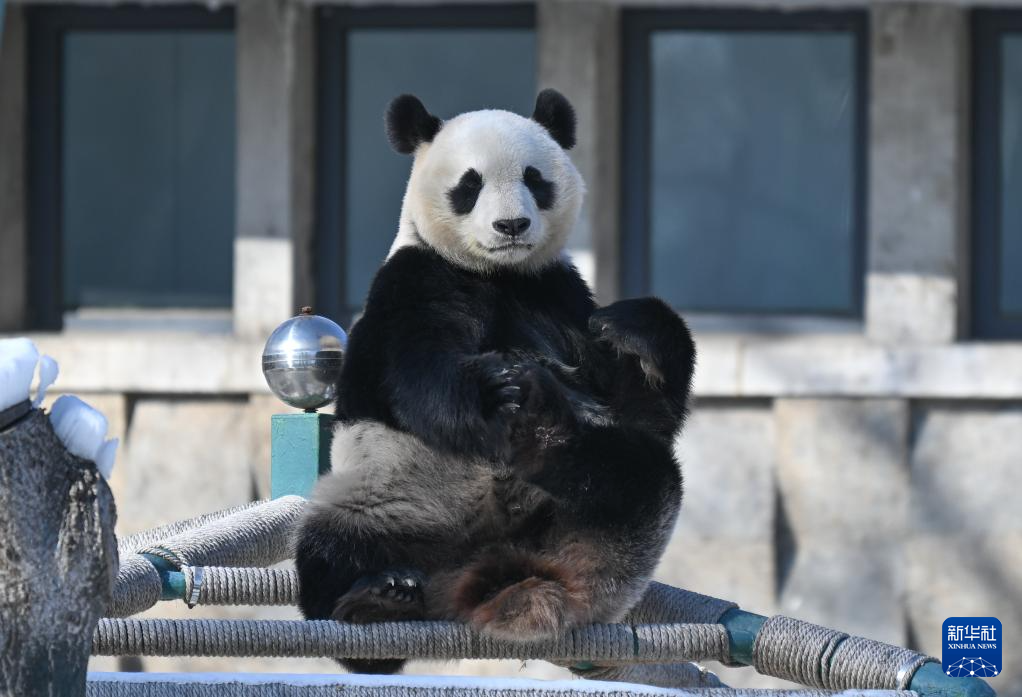 1月27日在天津动物园熊猫馆拍摄的大熊猫“喜乐”。