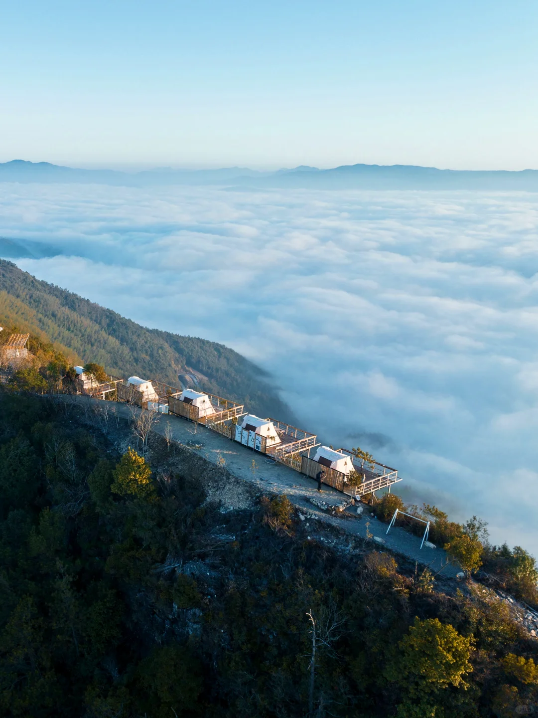 日破云海出,人间皆浪漫。位于柳峰尖的云顶露营小院是观赏云海日出的最佳地点之一。这是无法用言语概括的美景,一定要亲自来与云海、日出合张影呀~