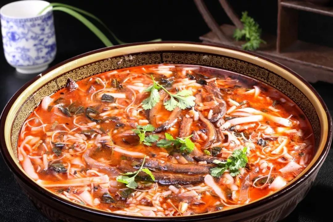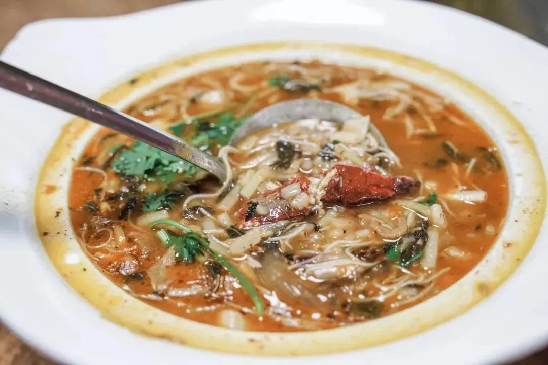 在廊桥文化园中的农家乐可以品尝到极具泰顺风味的泥鳅汤,这是一道泰顺传统美食,它既能当主食,又是非常好的下饭菜。汤里还汇集了泥鳅、苋菜干、笋干、四季豆、土豆丝、田螺粉线、米面、粉层等各种佐料,用本地的红粬酒糟来调味,各种味道交织在唇舌间。