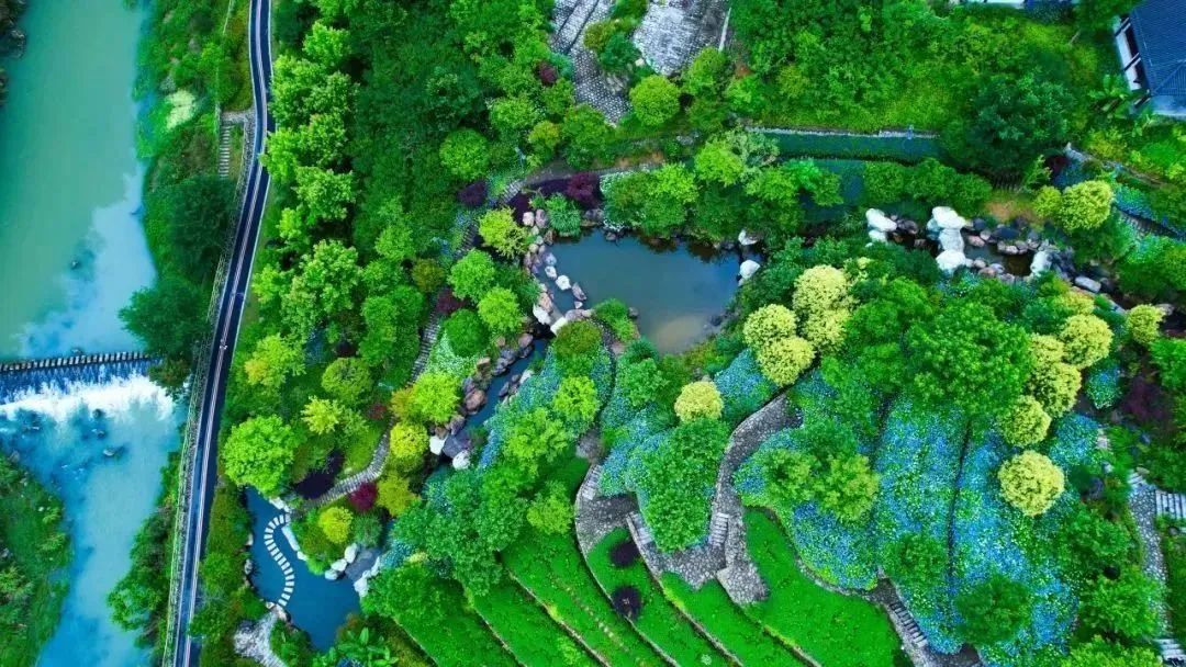 九曲溪毗邻廊桥文化园,这里一年四季都有应季的花朵盛开,庭院园林的建筑让人眼前一亮,群山环绕,空气中满满的负氧离子,是疗愈的最佳场所。