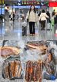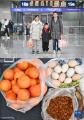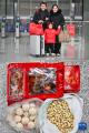 这是一张拼版照片:上图为来自山东省菏泽市巨野县董官屯镇的刘桂云(右一)与丈夫、女儿在重庆北站转车,准备返回四川内江工作;下图为她的返程行囊,装着父母为她准备的烧鸡、糕点、花生、米花糖等食品(2月4日摄)。春节假期即将结束,人们纷纷与亲人道别,离开家乡,奔向工作或学习的地方。离家的行囊,装满了对家乡的念想,也装满了亲人们的爱与牵挂。新华社记者 王全超 摄