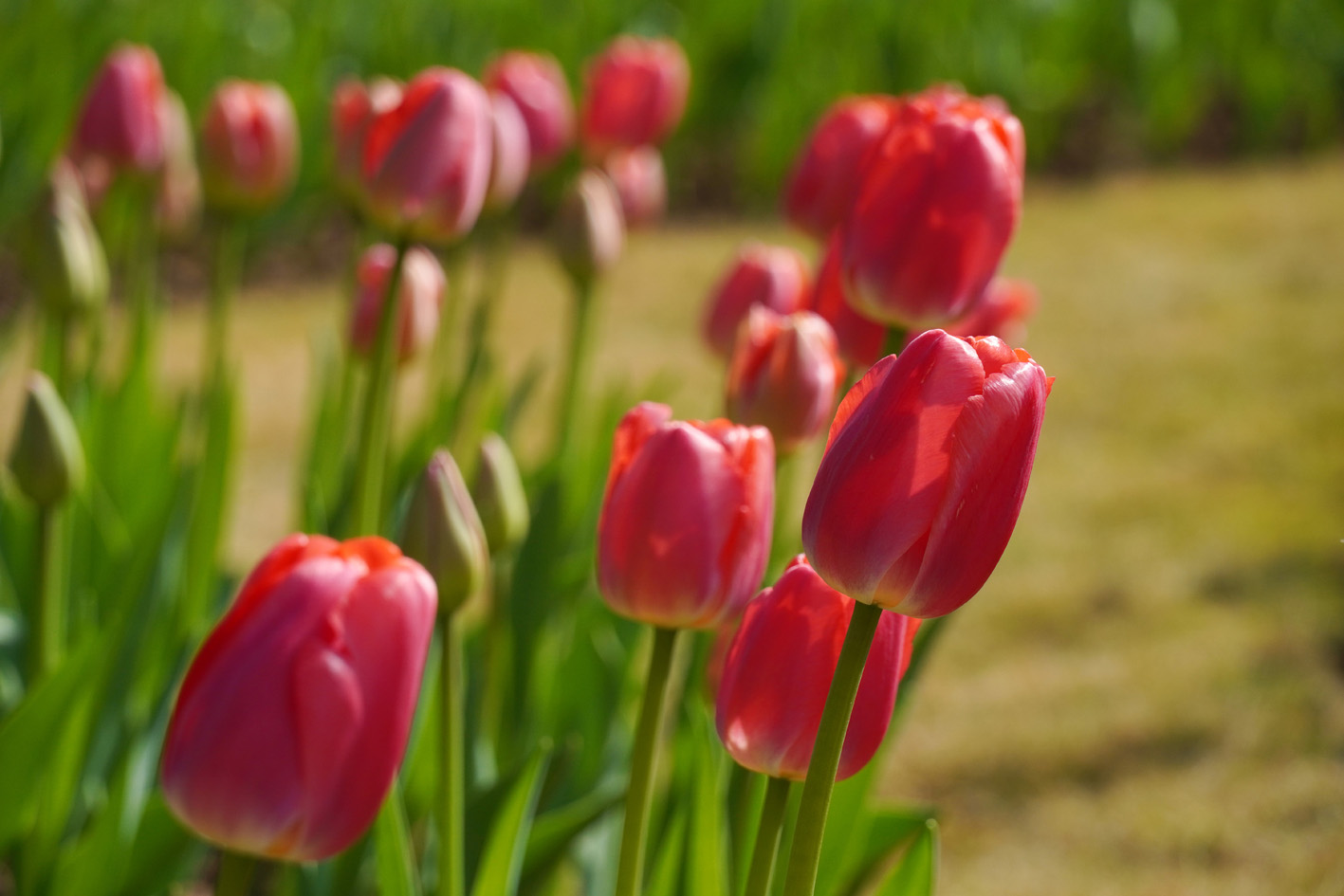 马鞍池公园去年12月份年种植了郁金香种球约16万个,有“世界火”、“皇家红”、“新太阳”、“水晶星”、“粉色印记”等20多个品种,地栽面积约3300平方。摄影: 郑鹏