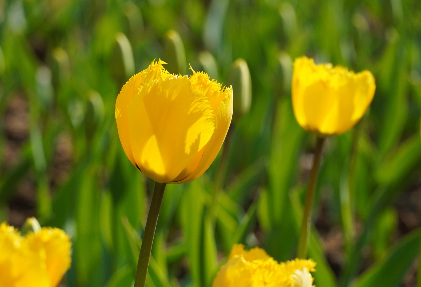 连日来,马鞍池公园种植的郁金香已经“吐”出了今年春节以来的第一波花朵,在初春暖暖的阳光下绽放着娇艳的色彩,引来许多市民观赏。摄影: 郑鹏