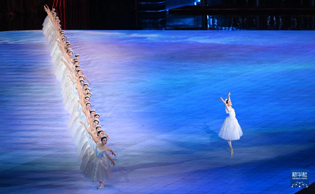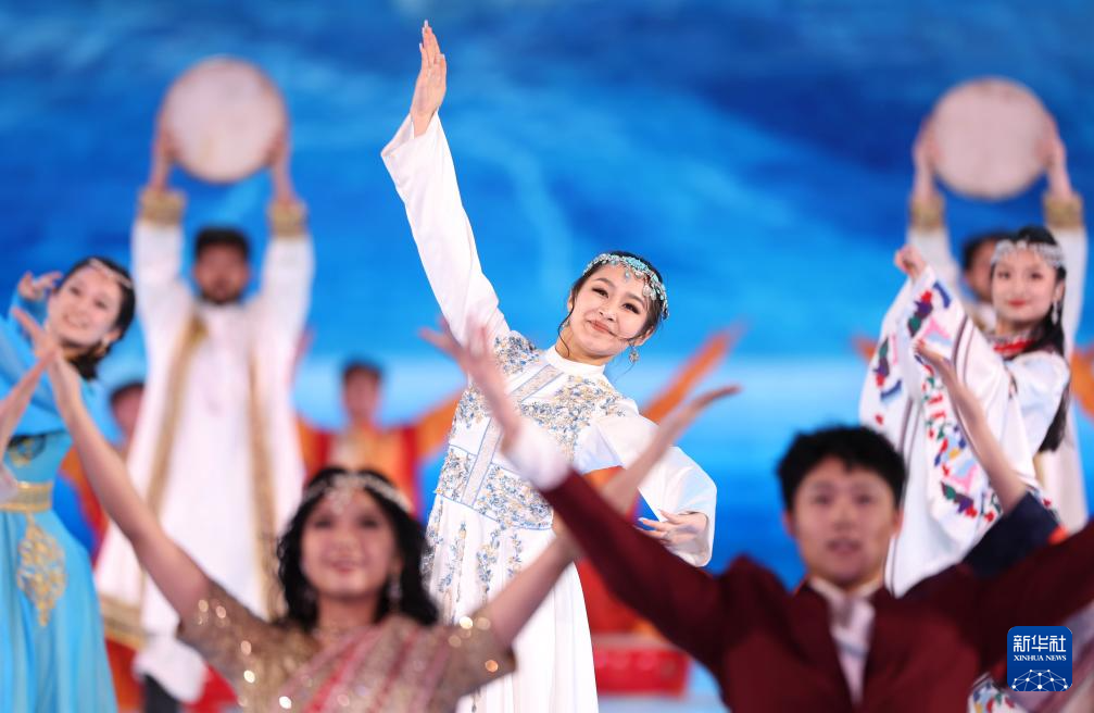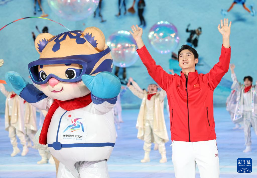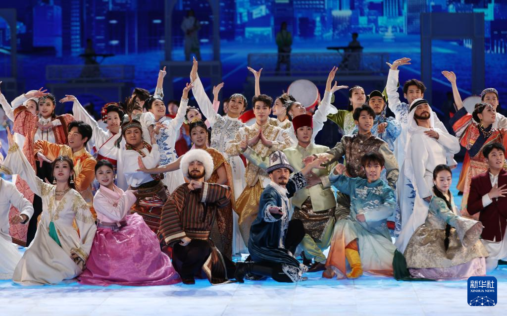 2月7日,演员在开幕式上表演。当日,第九届亚洲冬季运动会开幕式在哈尔滨举行。