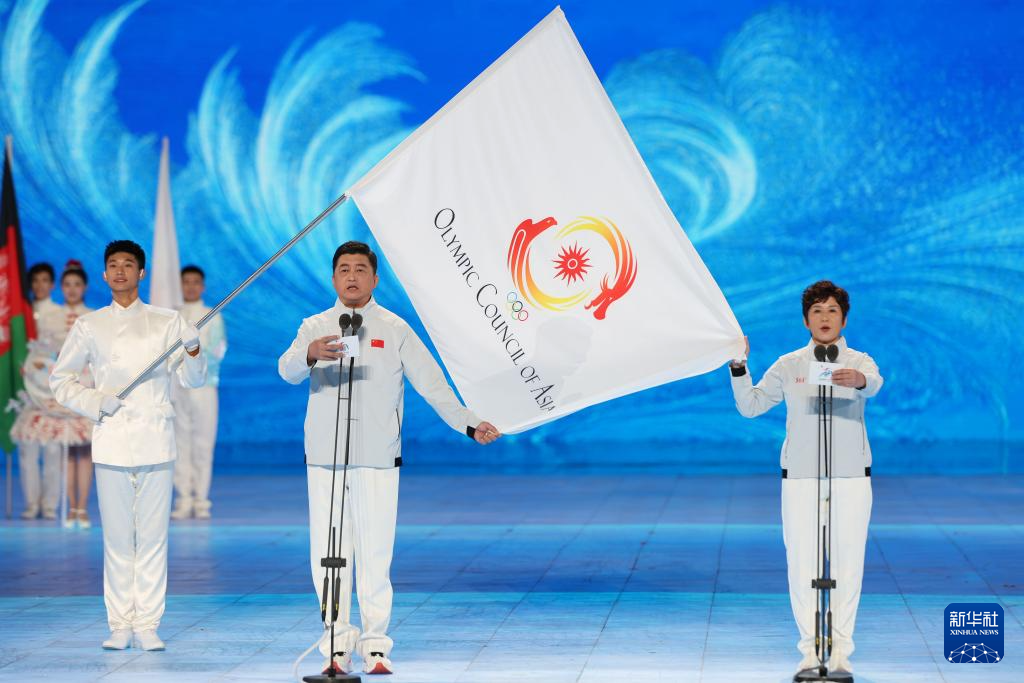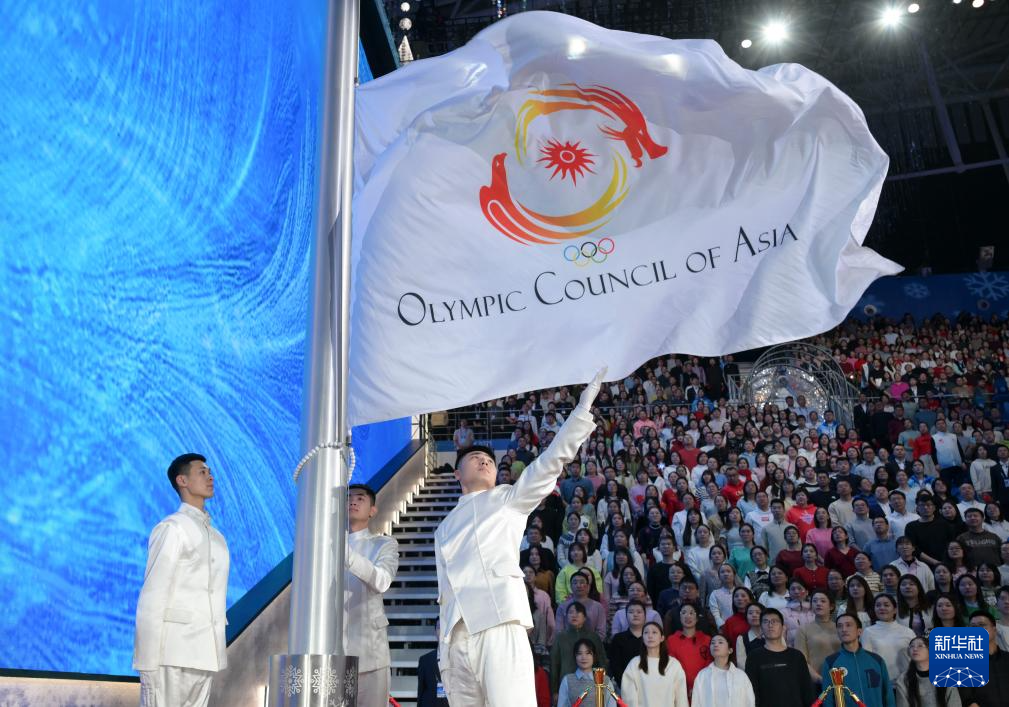 2月7日,亚奥理事会会旗在开幕式上升起。