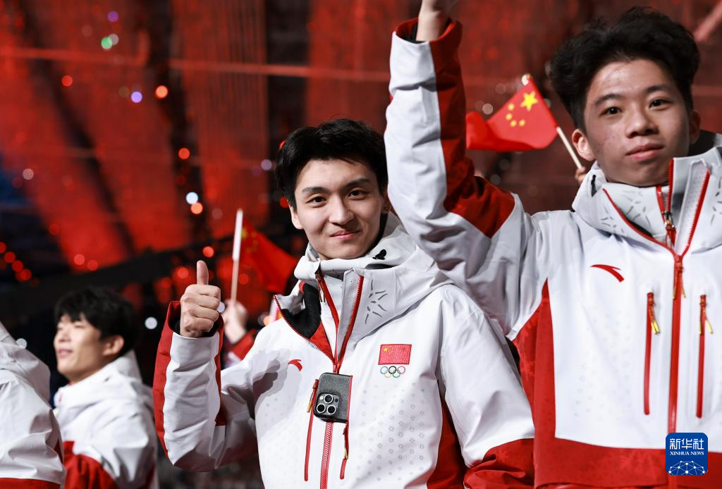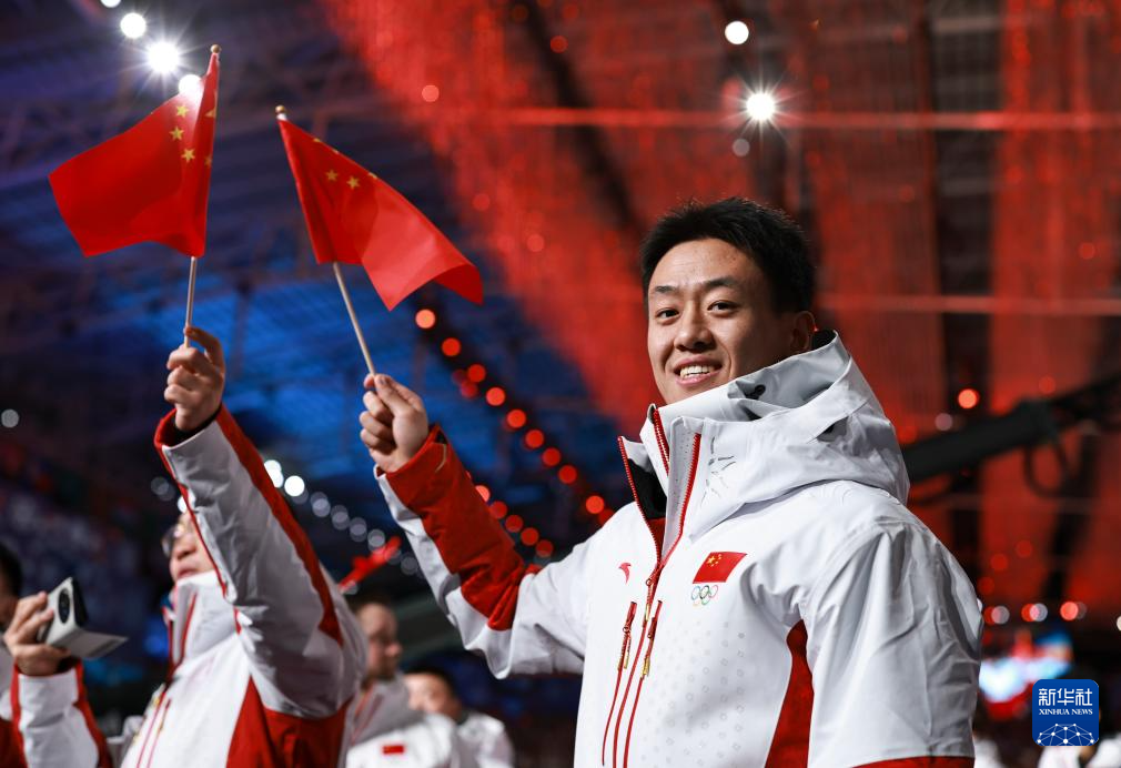 2月7日,中国体育代表团成员闫星元在开幕式上入场。