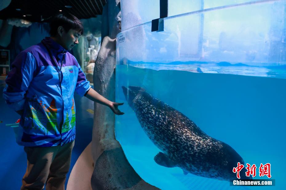 图为工作人员检查斑海豹身体状况。
