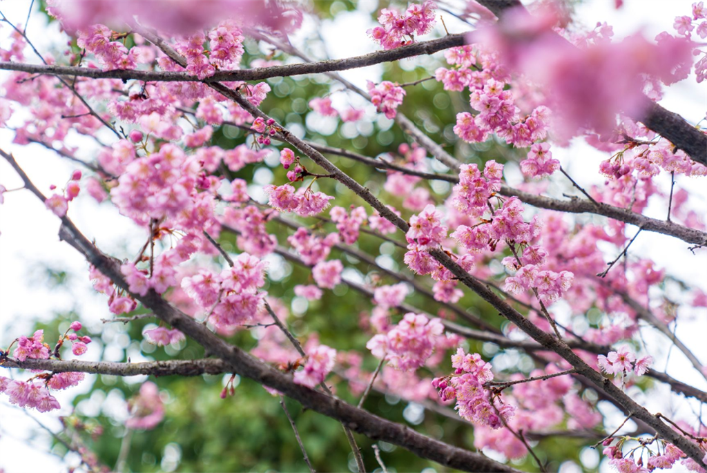 桃花岛公园除了主打的桃花外,园内还大规模种植了钟花樱、河津樱等早樱品种。摄影: 刘伟