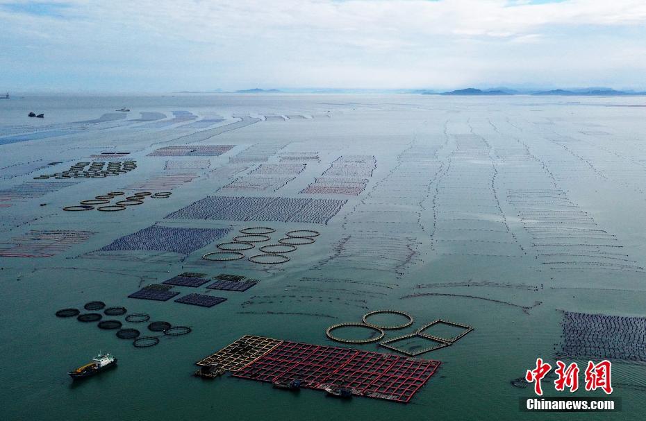 资料图为2024年6月7日,福建省连江县定海湾海域的“海上粮仓”蔚为壮观。(无人机照片)