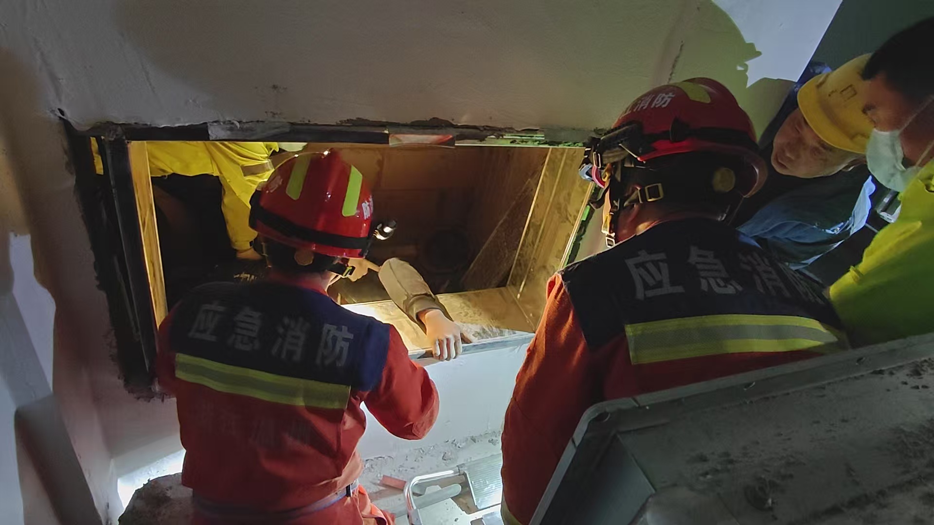 工人坠入地下室井底 龙港消防打开通风口救人