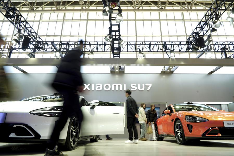 2024年11月28日,人们在第二届中国国际供应链促进博览会智能汽车链展区小米汽车展台参观。新华社发(那宇奇摄)