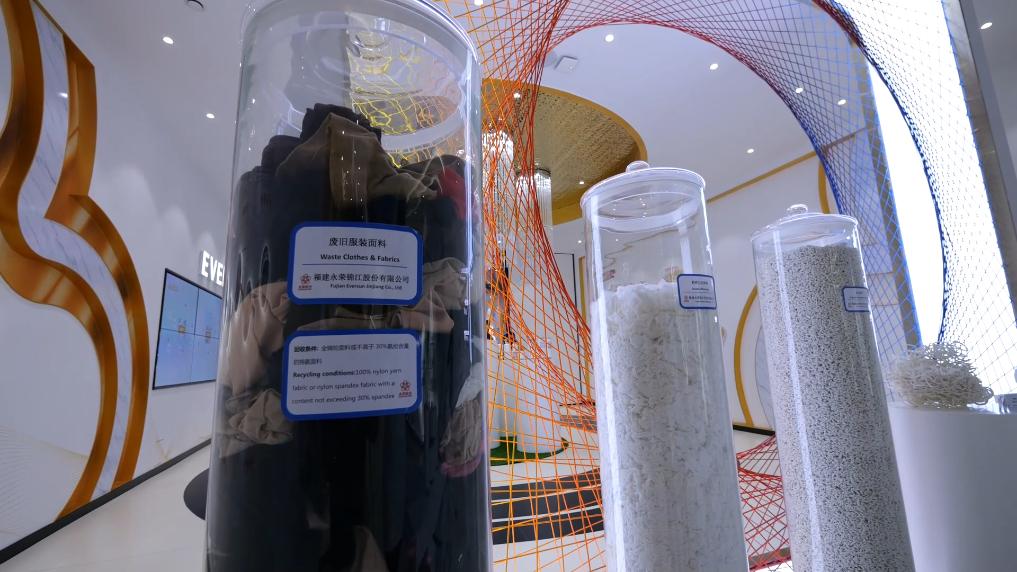 位于长乐区的福建永荣锦江股份有限公司生产车间里,生产线飞速运转,用来生产尼龙纱线的原料不再是石油提取物,而是废旧纺织品。
