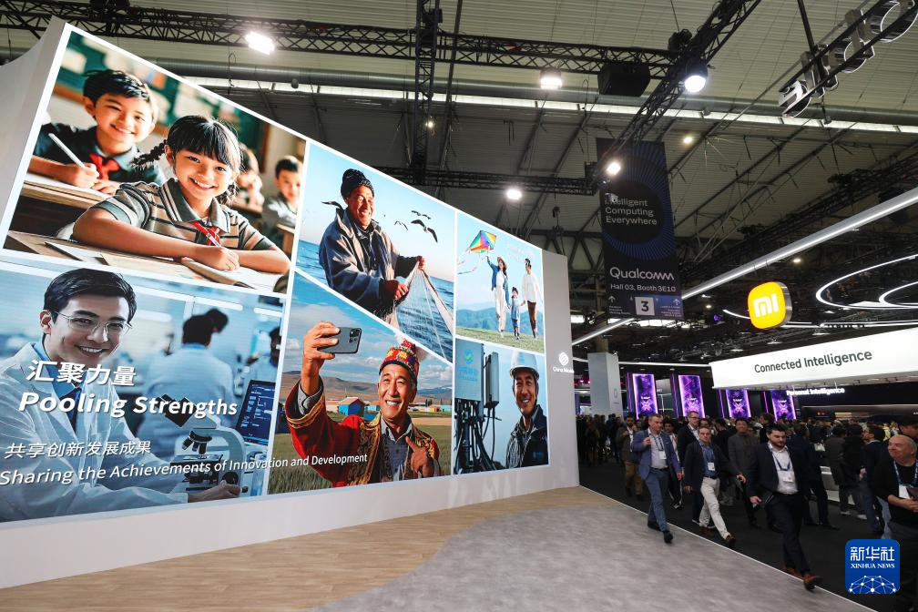 3月3日,在西班牙巴塞罗那举行的2025年世界移动通信大会上,人们经过中国移动展区。