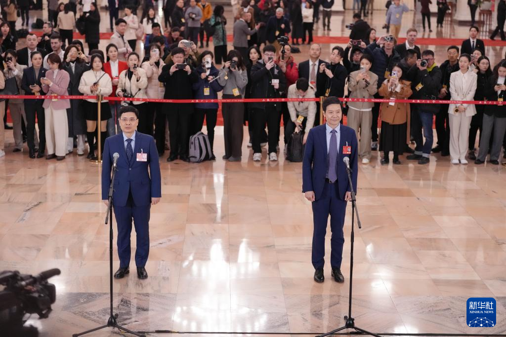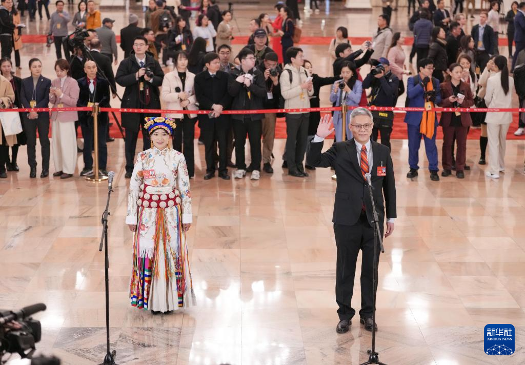 3月5日,第十四届全国人民代表大会第三次会议首场“代表通道”集中采访活动在北京人民大会堂举行。新华社记者 郑焕松 摄