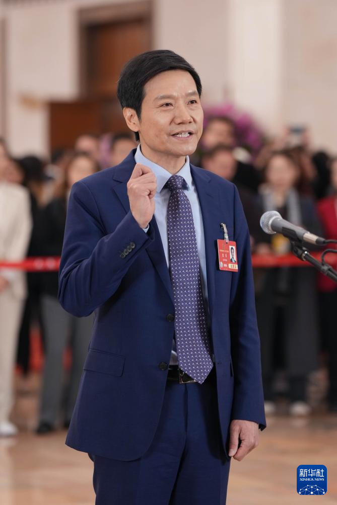 3月5日,第十四届全国人民代表大会第三次会议首场“代表通道”集中采访活动在北京人民大会堂举行。这是全国人大代表雷军接受媒体采访。新华社记者 刘大伟 摄