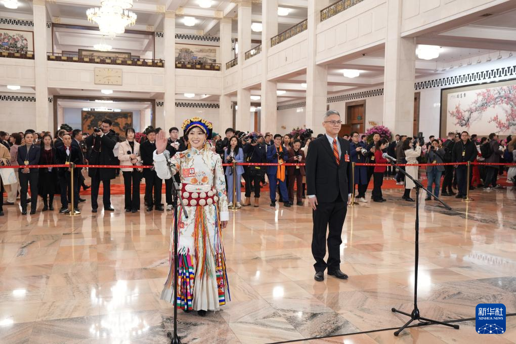 3月5日,第十四届全国人民代表大会第三次会议首场“代表通道”集中采访活动在北京人民大会堂举行。新华社记者 刘大伟 摄