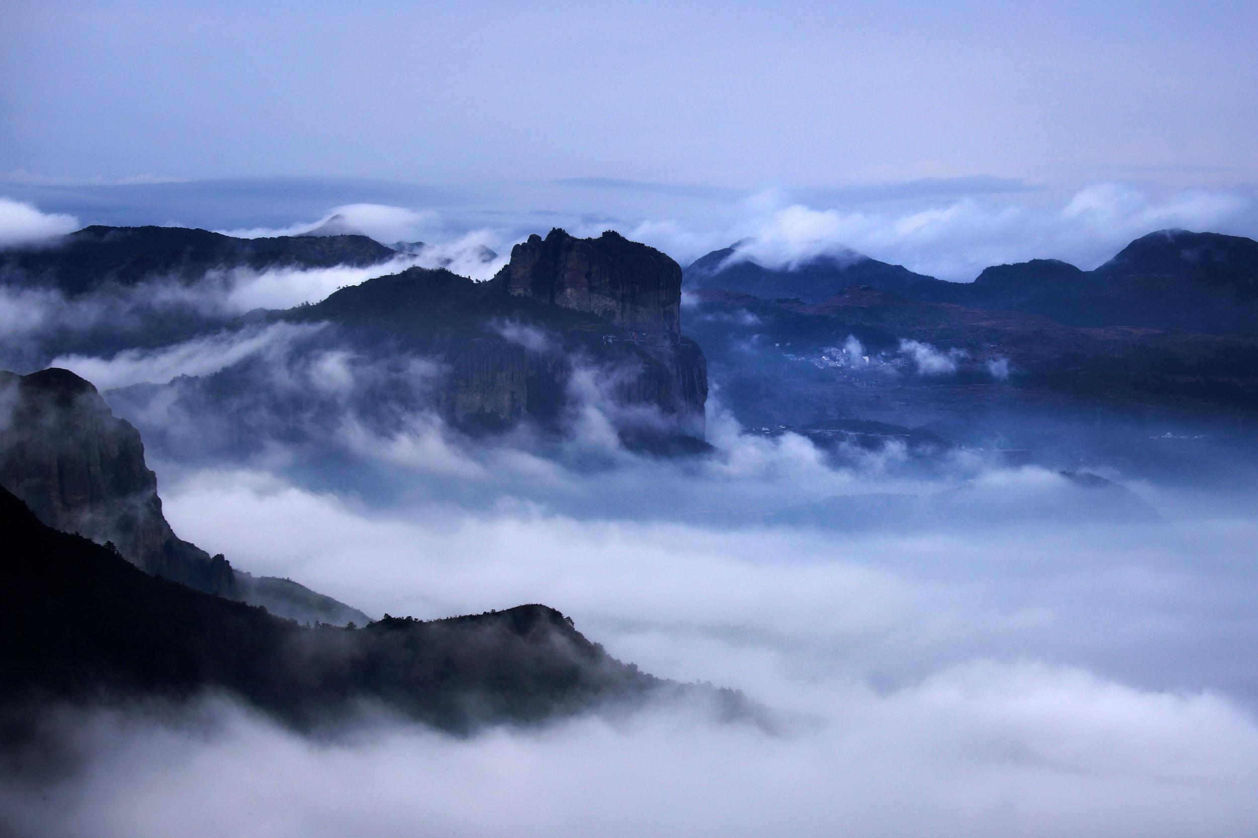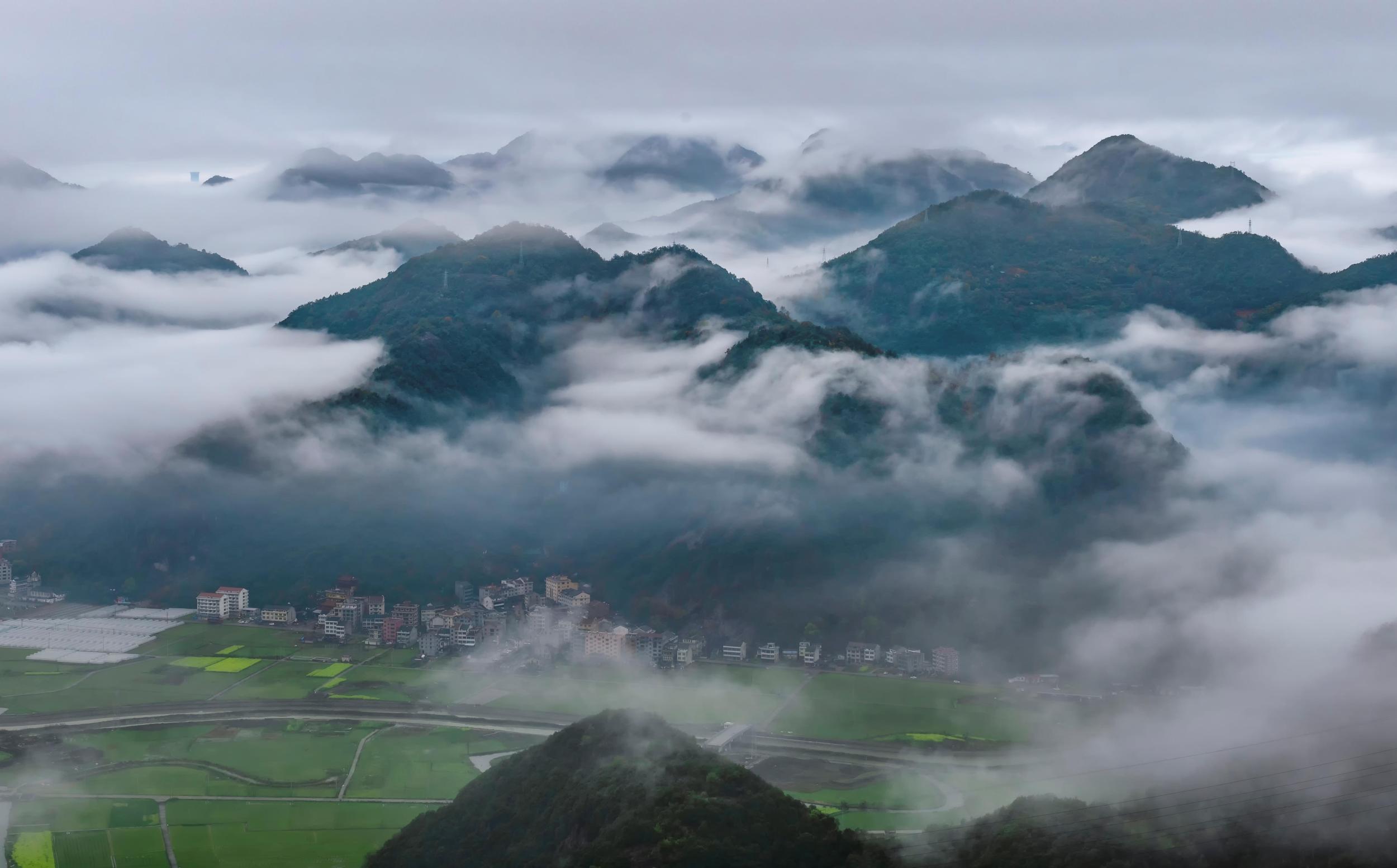 春寒料峭,温州乐清市北白象镇茗山常现云雾,绵绵起伏的山峦在云雾之中若隐若现。