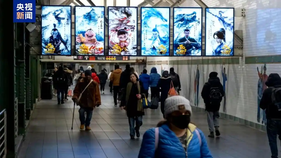 《哪吒2》海报亮相美国纽约多个地铁站。
