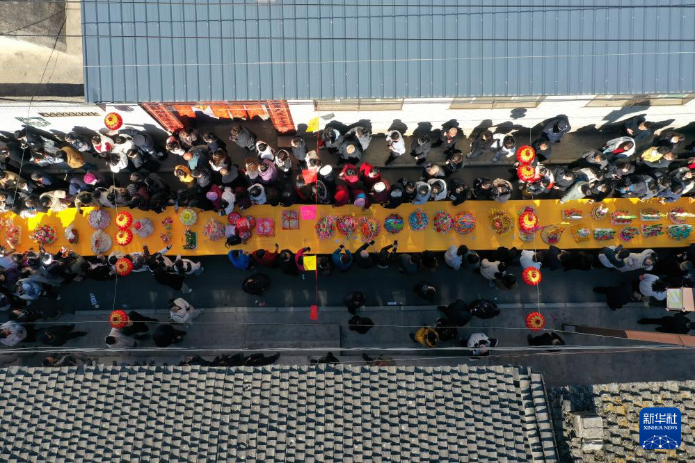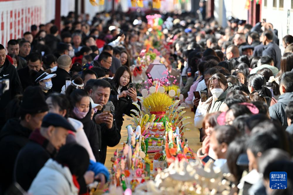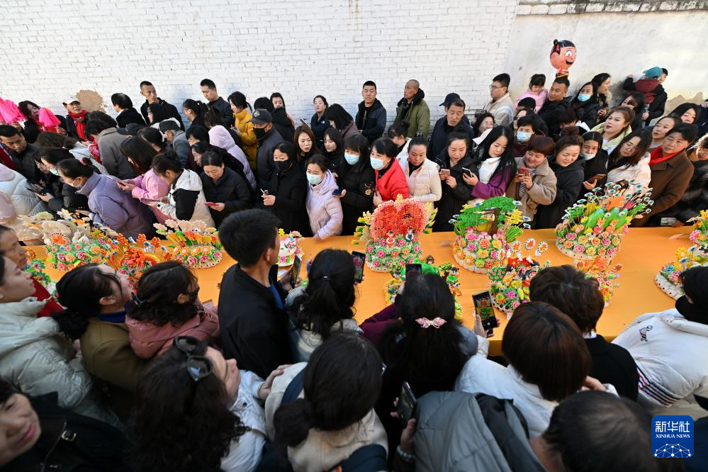 当日是农历二月十九,每年农历这一天,吕梁山区的山西省岚县岚城镇的乡亲们都会将精心制作的面塑摆上街头进行展示,形成一条百米长的“面塑长河”。