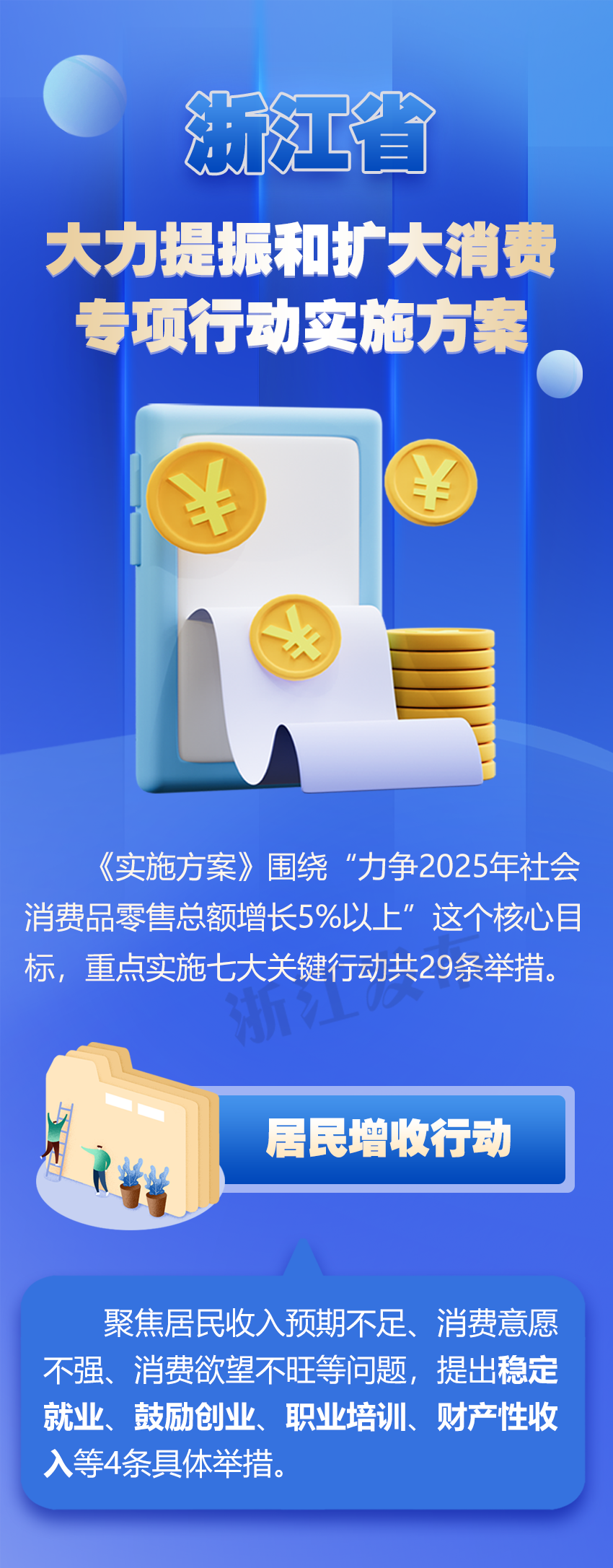 为贯彻落实国家提振消费专项行动,经省政府常务会议研究,省政府办公厅第一时间印发《浙江省大力提振和扩大消费专项行动实施方案》。