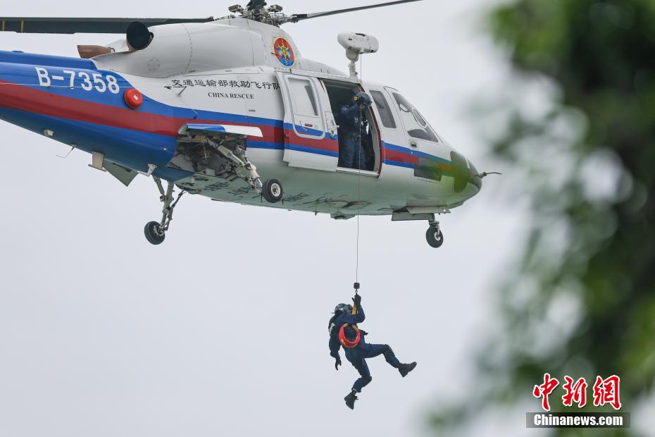 3月19日,中国交通运输部救捞系统在海南海口组织开展南部海区海空立体救助演练。此次演练涵盖了人员落水搜救、直升机吊运快速转运送医、深远海扫测等科目。