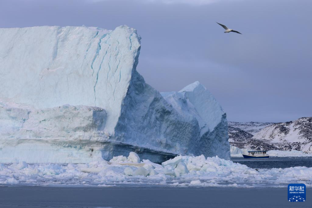 这是3月22日在丹麦自治领地格陵兰岛迪斯科湾拍摄的冰山和船只。迪斯科湾是格陵兰岛西海岸著名的冰山聚集地,这里的冰山因规模巨大、形状独特和景色壮观闻名。迪斯科湾的冰山被称为气候变化的指示器,冰山数量、大小和移动速度等为人们研究全球气候变暖提供重要参考。新华社记者 赵丁喆 摄