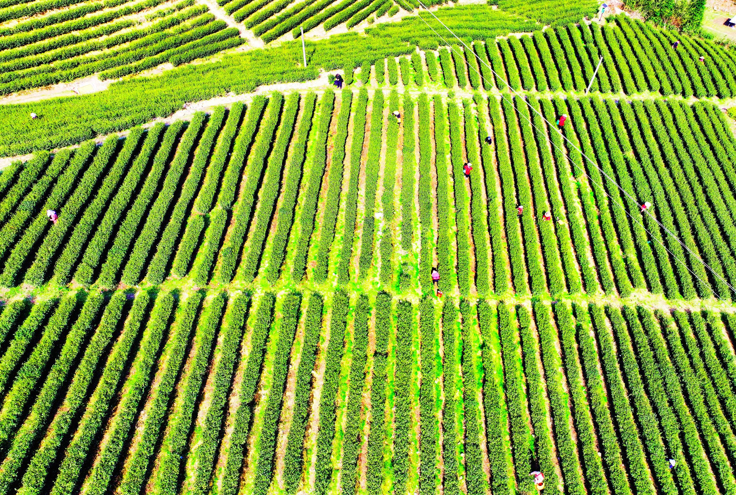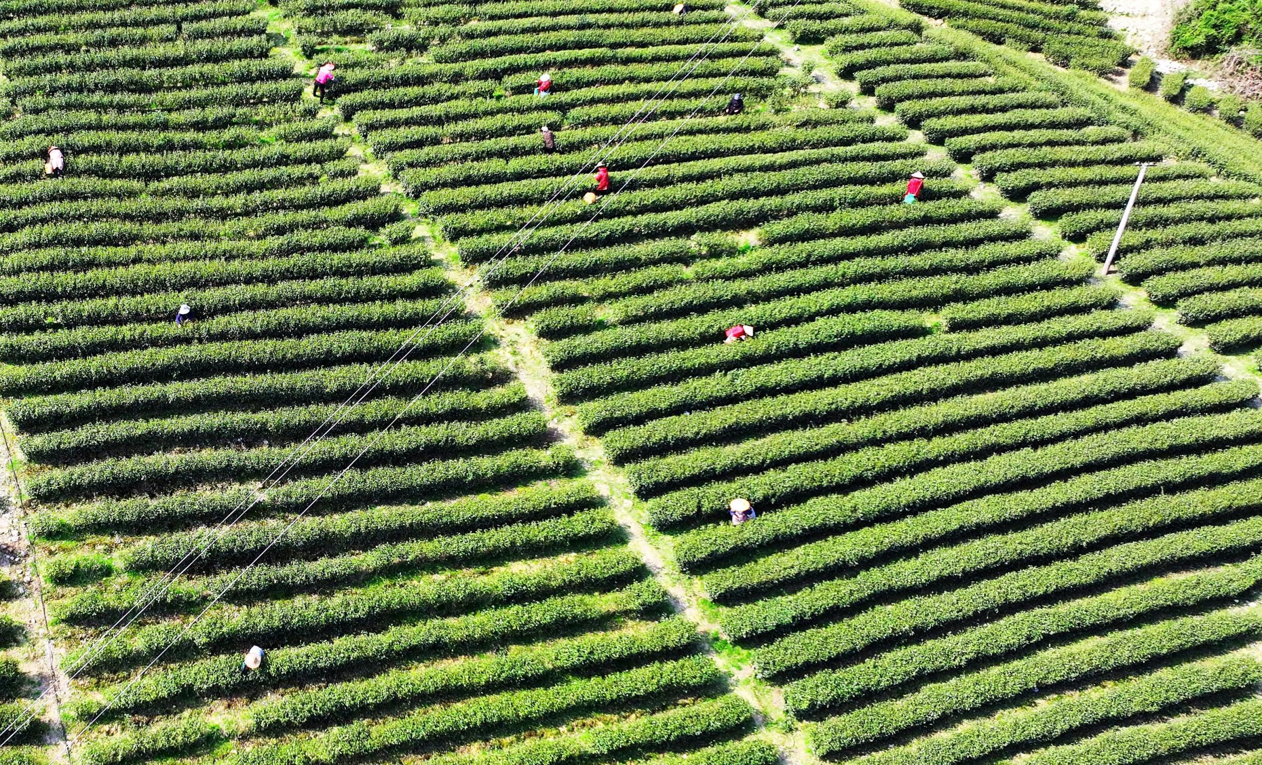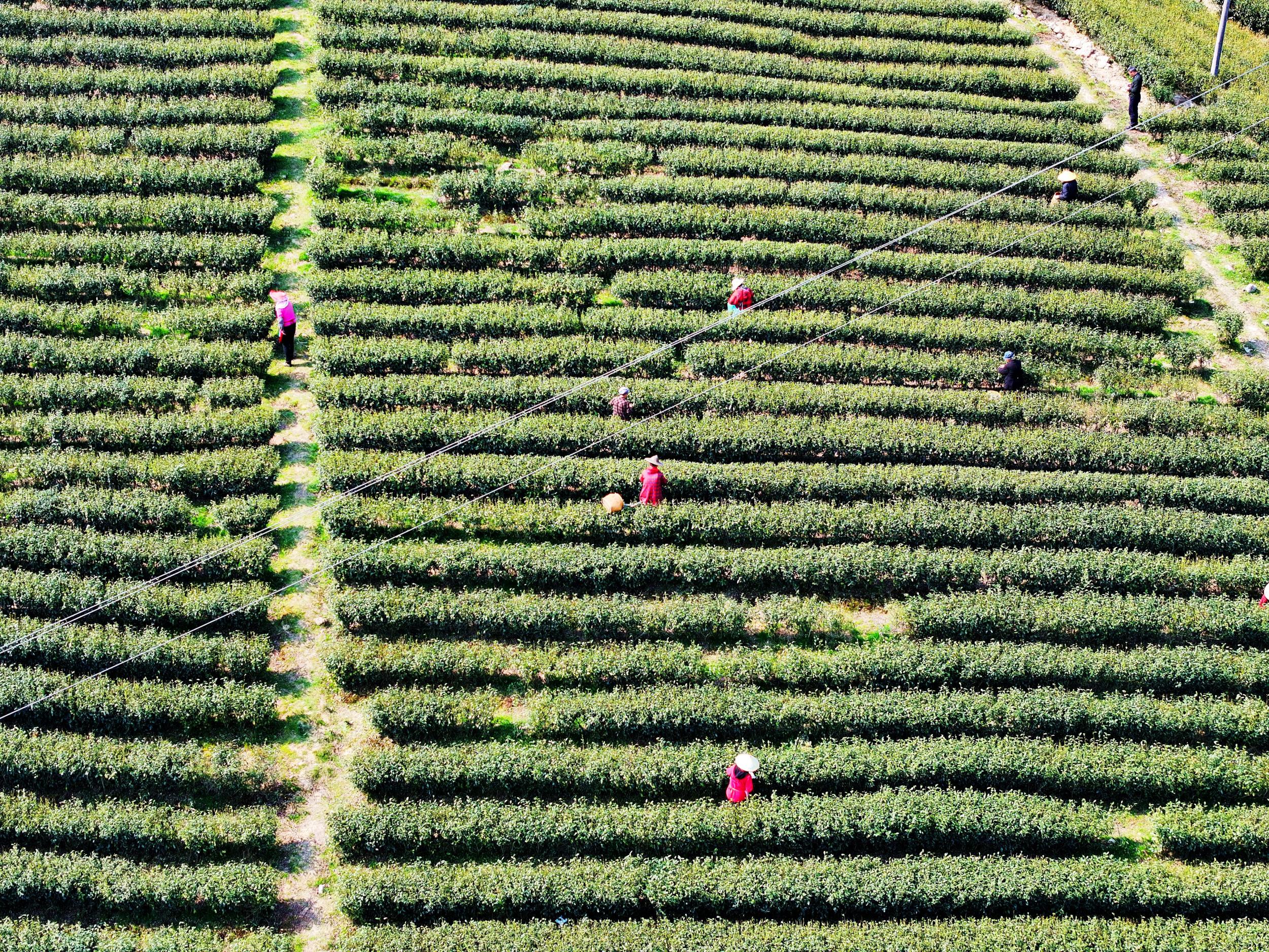 3月24日,泰顺县罗阳镇上洪茶场的高山上,茶农们正忙着采摘清明前的茶叶。记者 周汉祥