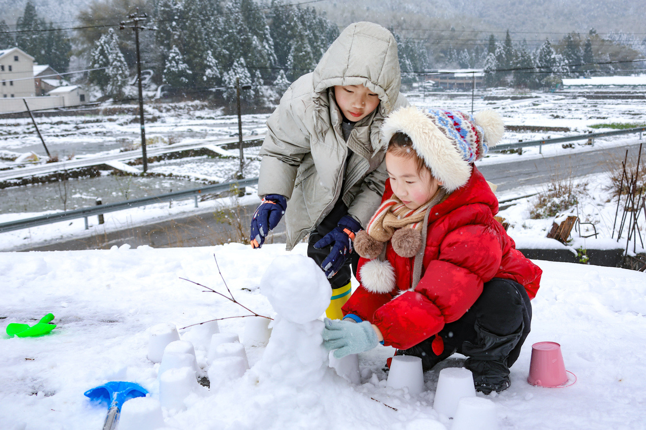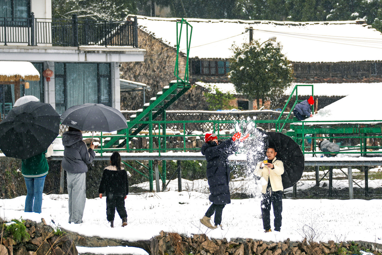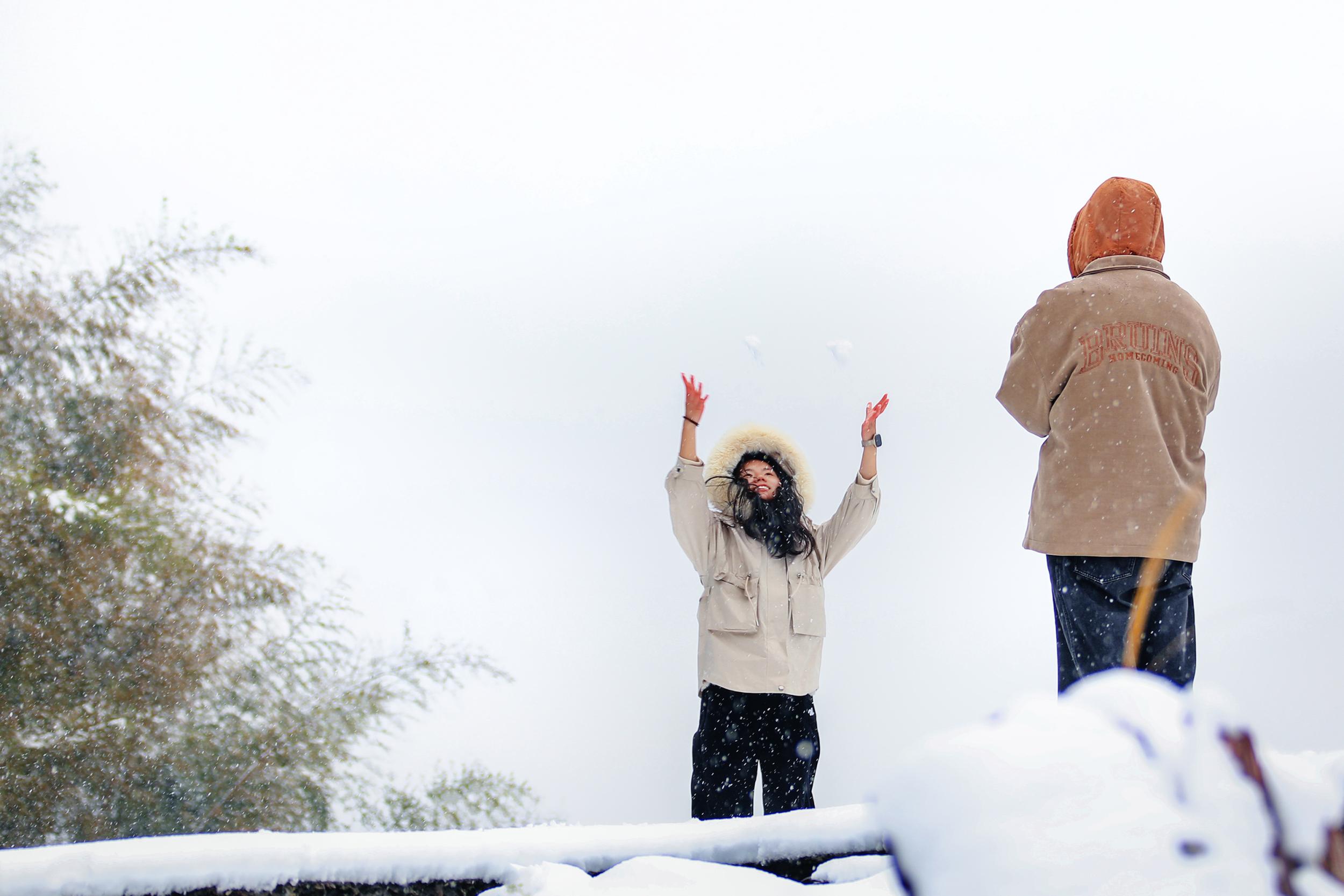 在五凤垟观景台,摄影爱好者李女士拿起相机,镜头里定格朋友们在雪地里嬉笑打闹的美好时光。(作者:陈明铭)