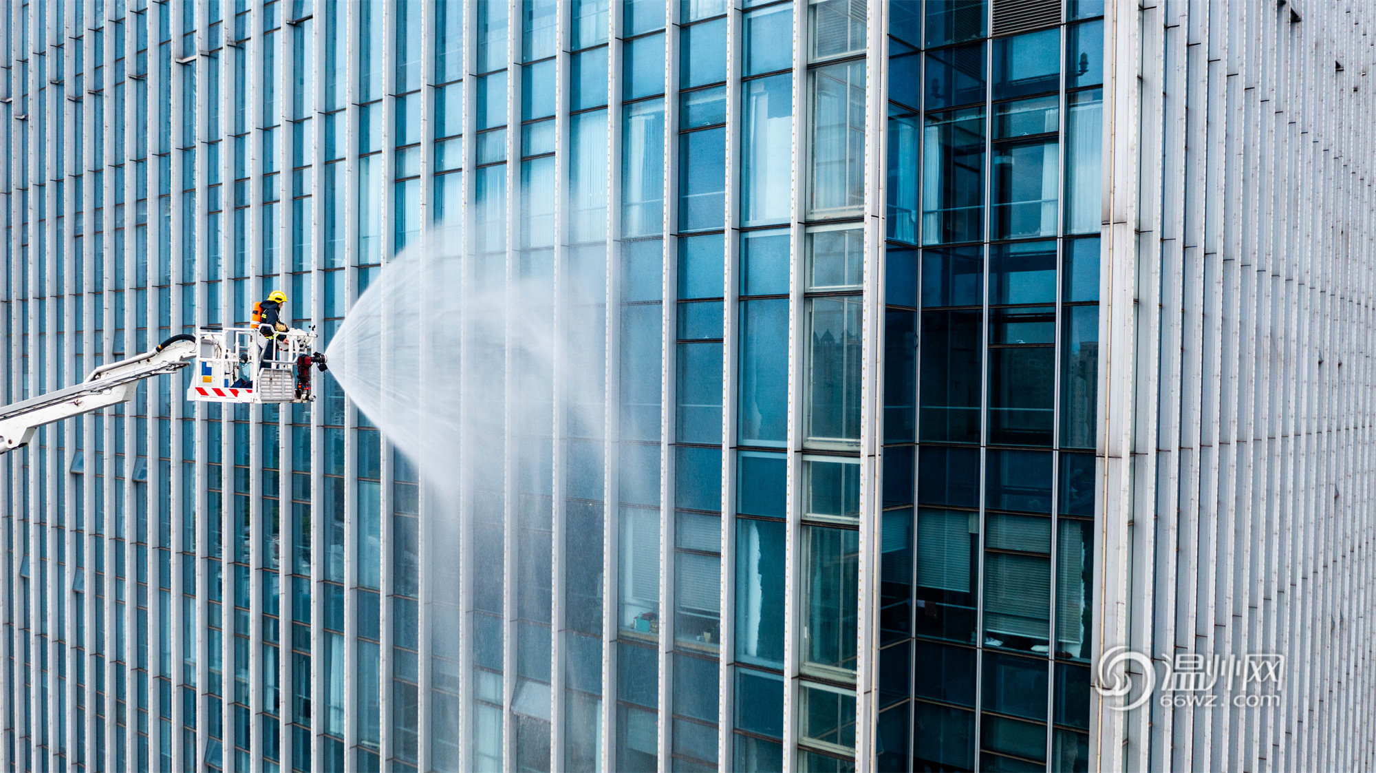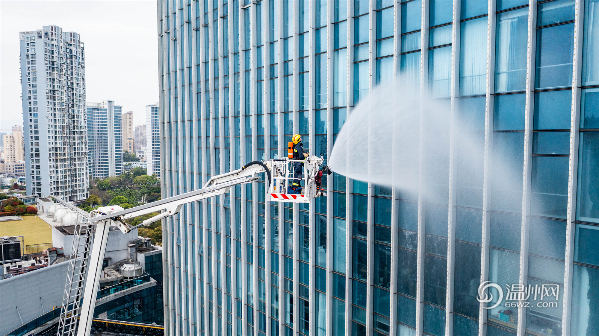 温州网讯(通讯员 刘吉利)近日,温州市消防救援支队联合公安、应急、医疗等多部门,在鹿城区置信广场(高度213.5米)开展超高层建筑灭火救援综合实战演练。
