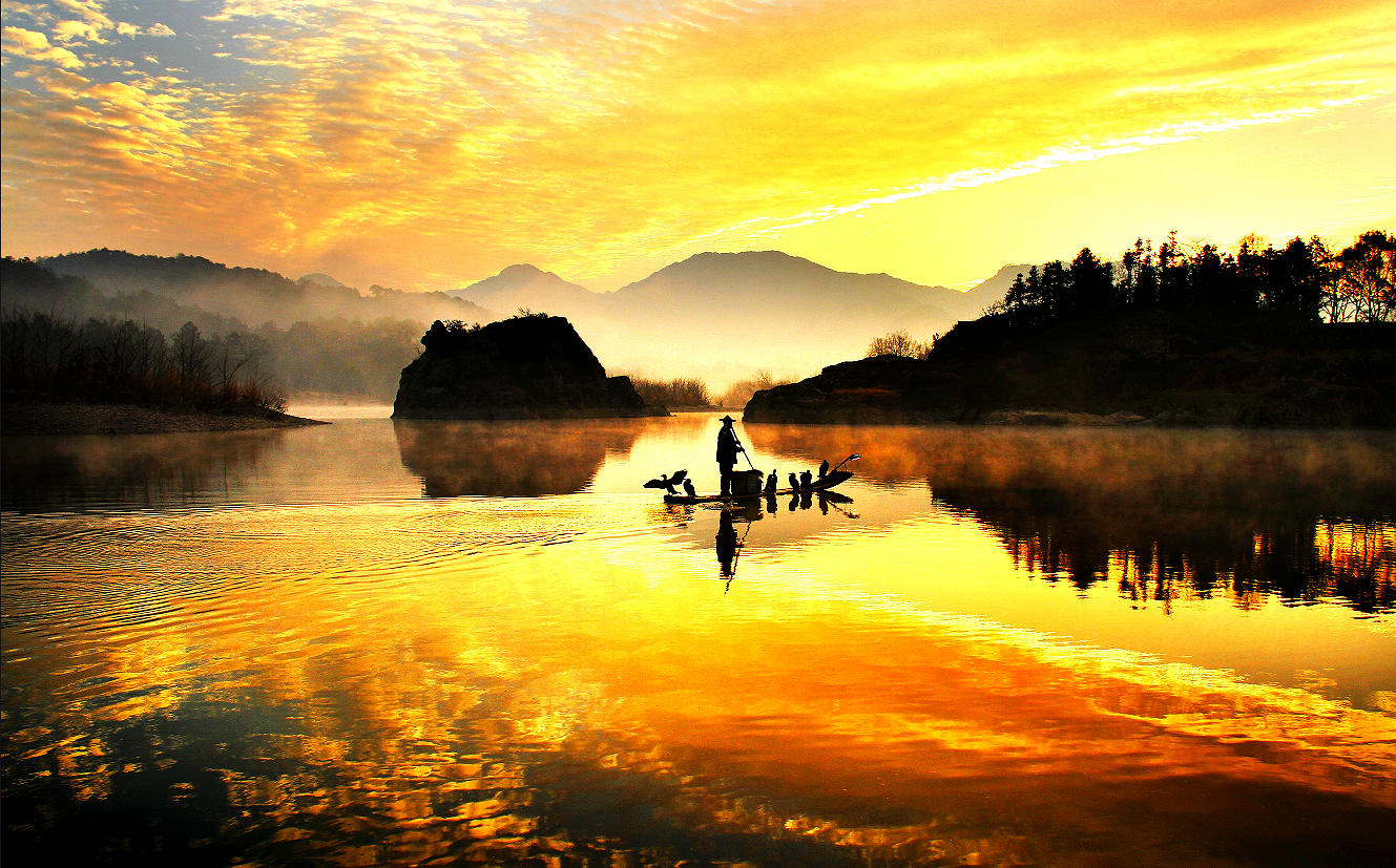 永嘉楠溪江狮子岩宛如江中盆景,朝霞映照两岸,山青水秀,赏心悦目。叶卫周 摄