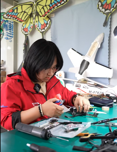 与其他年轻“飞手”最大的不同,罗一萌是个全能型选手:能飞、能修、能安装,拆修部件俨然一个“老师傅”。“没办法,孩子一个人在杭州读书,很多事情都要她自己上手做,反倒练就了一些技能。”罗一萌的妈妈周女士说。