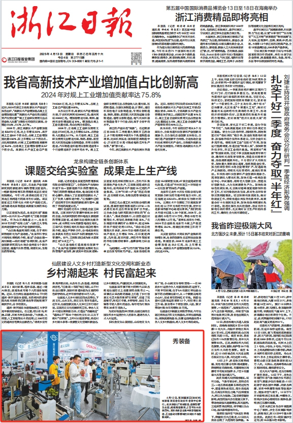 4月12日,第30届浙江(瑞安)机械装备展览会在瑞安市会展中心举行。此次展会以“高端智造,创新引领”为主题,将持续至4月14日。