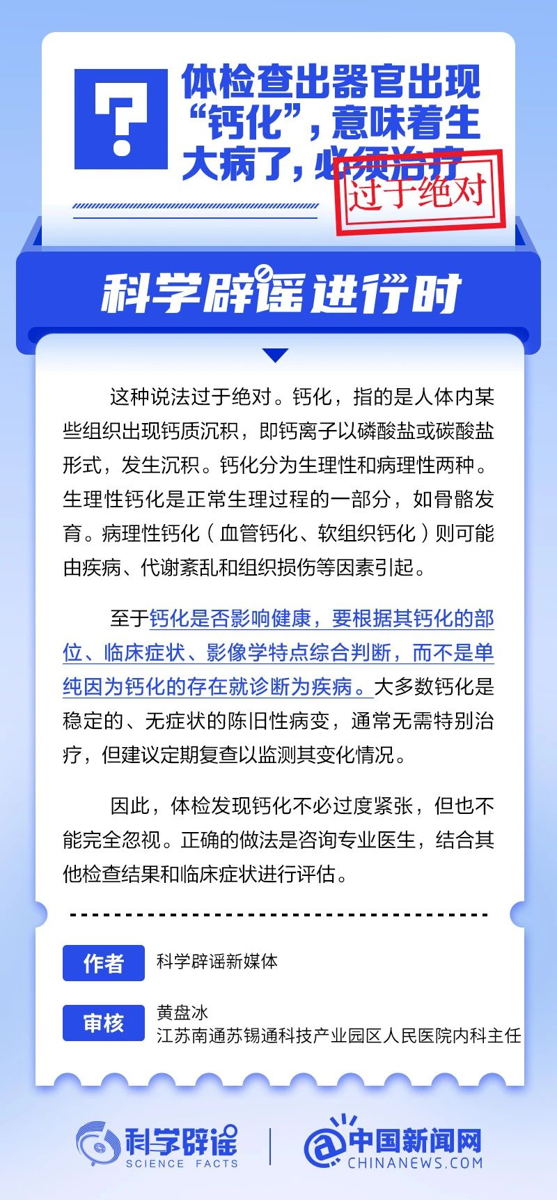 体检查出器官出现“钙化”,意味着生大病了,必须治疗?