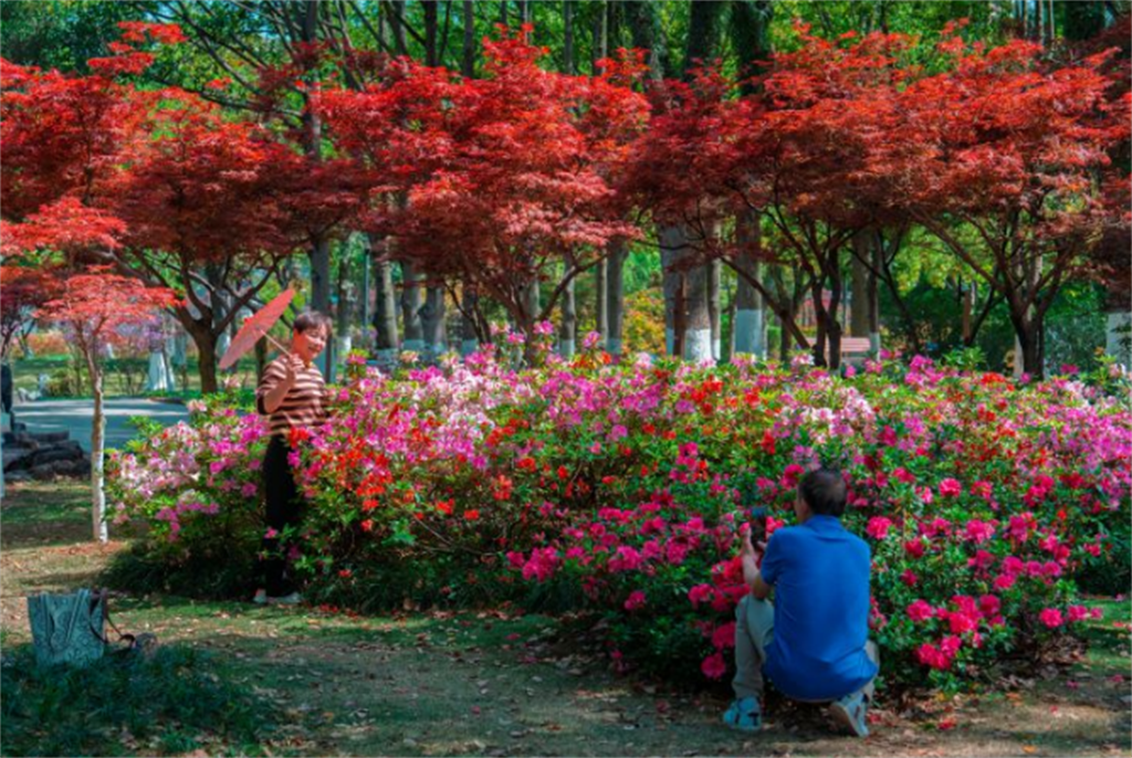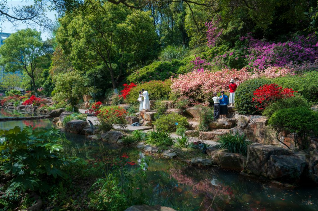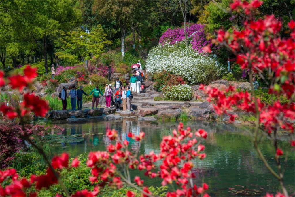 四月过半,随着气温回升,温州市区绣山公园10万余株、50余个品种的杜鹃花全情盛放。摄影: 刘伟