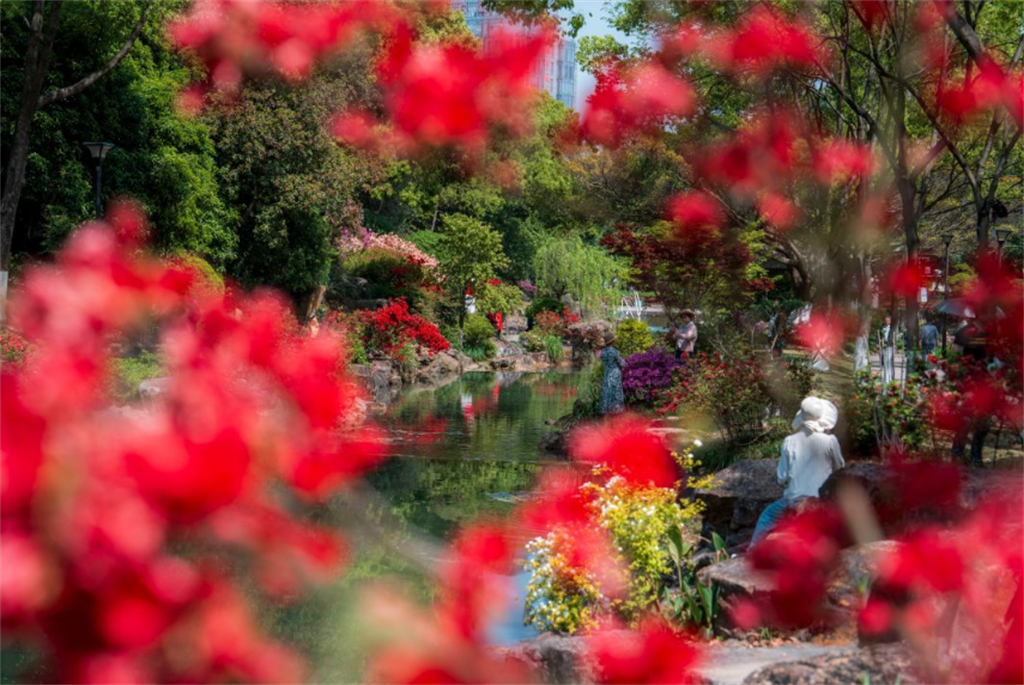 井喷的爆花量将公园变成油画的世界,绣山公园变身温州版莫奈花园。摄影: 刘伟