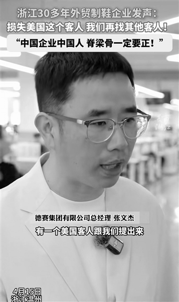 温州网讯 “损失了一个客人(美国),我们可以找其他客人,但中国制造的脊梁骨一定要正!”近日,温州鞋企德赛集团有限公司(以下简称德赛)发布了一条公司总经理张文杰“硬刚”美国客户的视频,面对美国客户“半价拿货”的无理要求,他果断回绝。