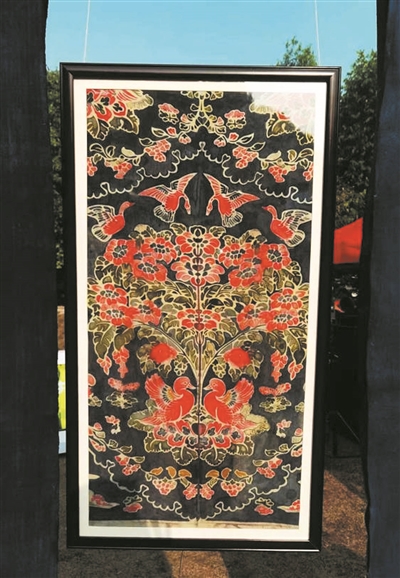 复刻的彩色夹缬作品 《绀地树花双鸟鸳鸯图》
